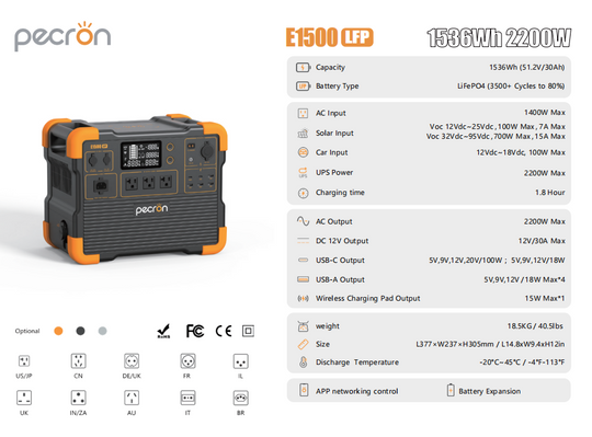 Pecron E1500LFP Expandable Portable Power Station | 2200W (1536Wh LiFePO4)