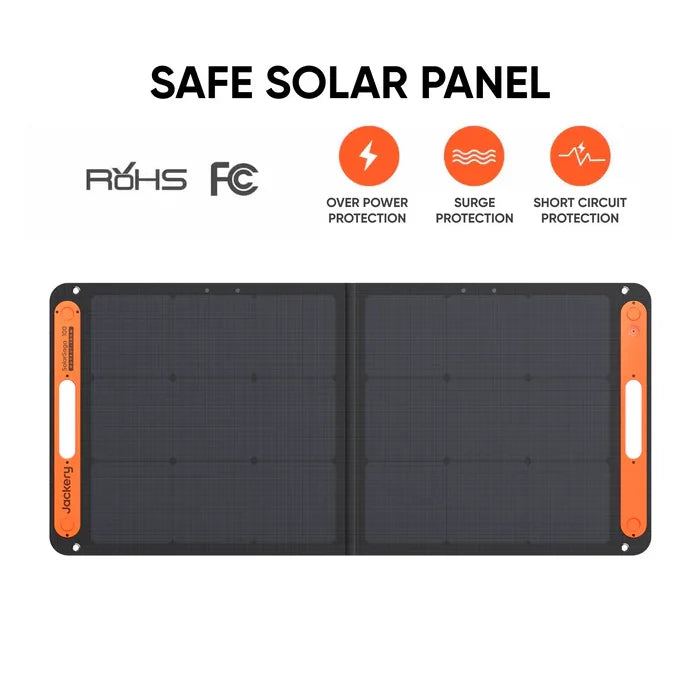 With Jackery's SolarSaga 100W Solar Panel, you can maximize every ray.  Reduce your dependency on the grid by quickly recharging compatible Jackery power stations.